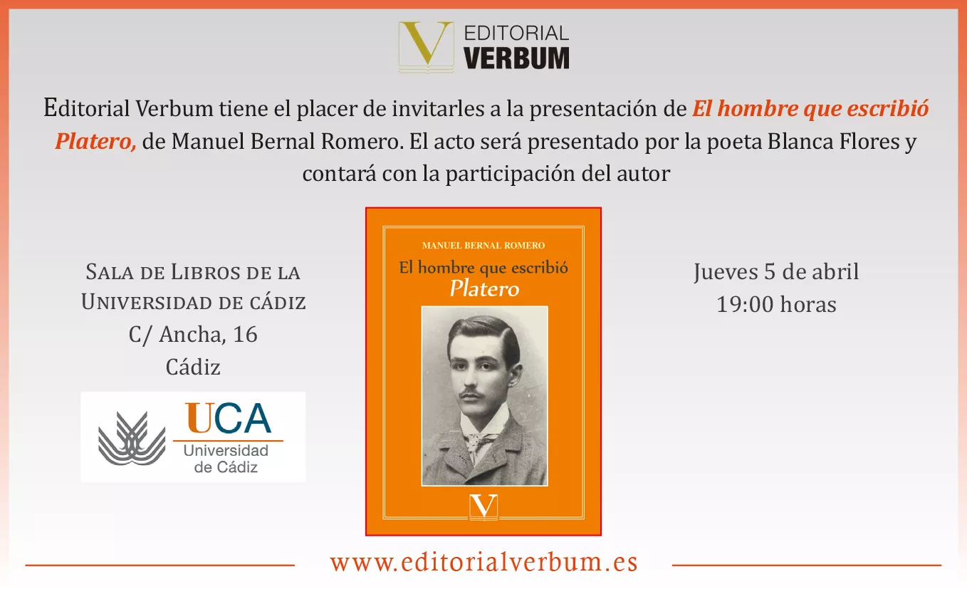 UNIVERSIDAD DE CADIZ Calle Ancha, 16, CadizPresentación de «El hombre que escribió Platero», de Manuel Bernal [...]
