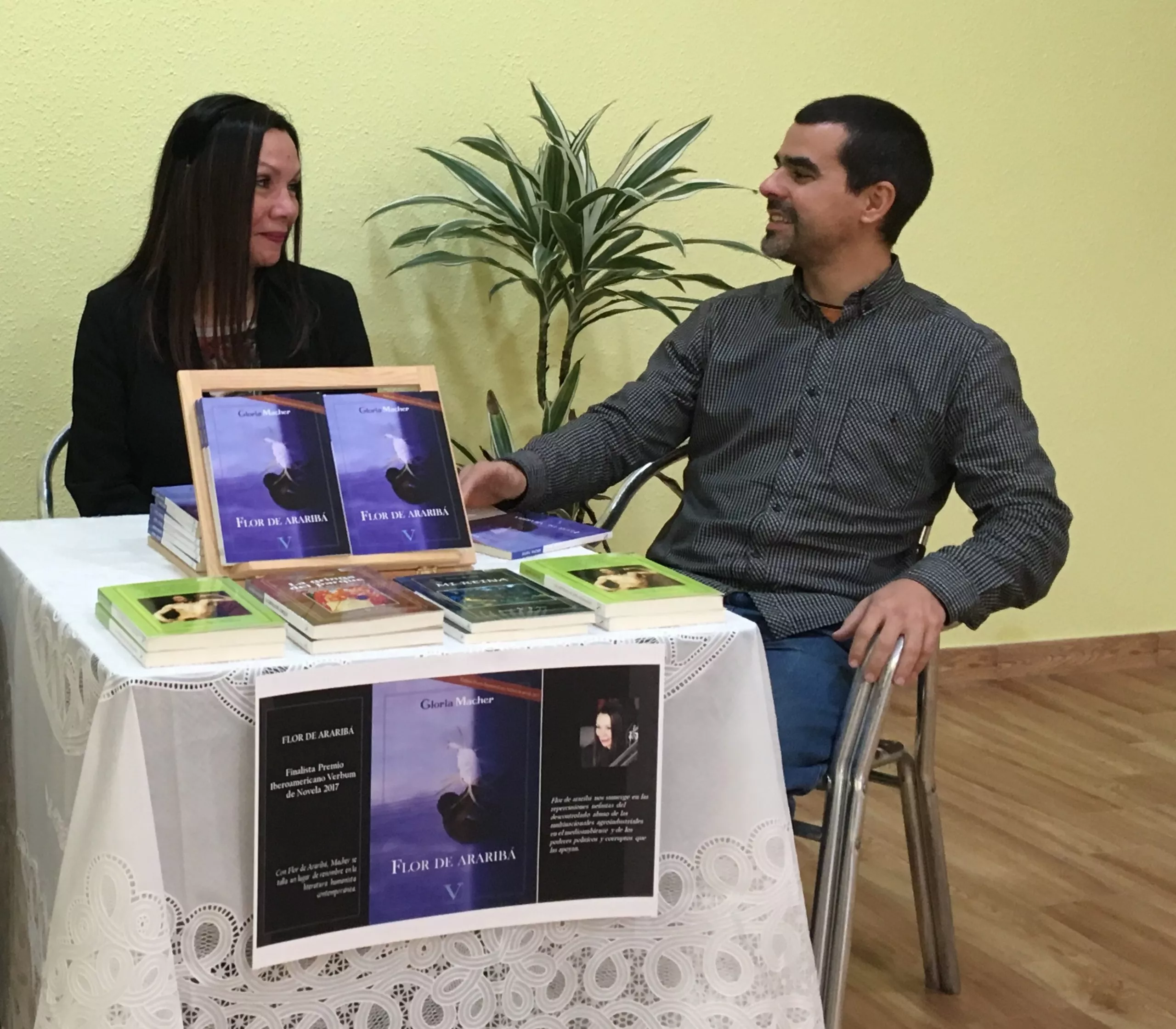 El pasado 22 de Marzo nos visitó en la Librería Espacio Cultural Verbum, Gloría Macher con su nueva novela «Flor de Araribá».