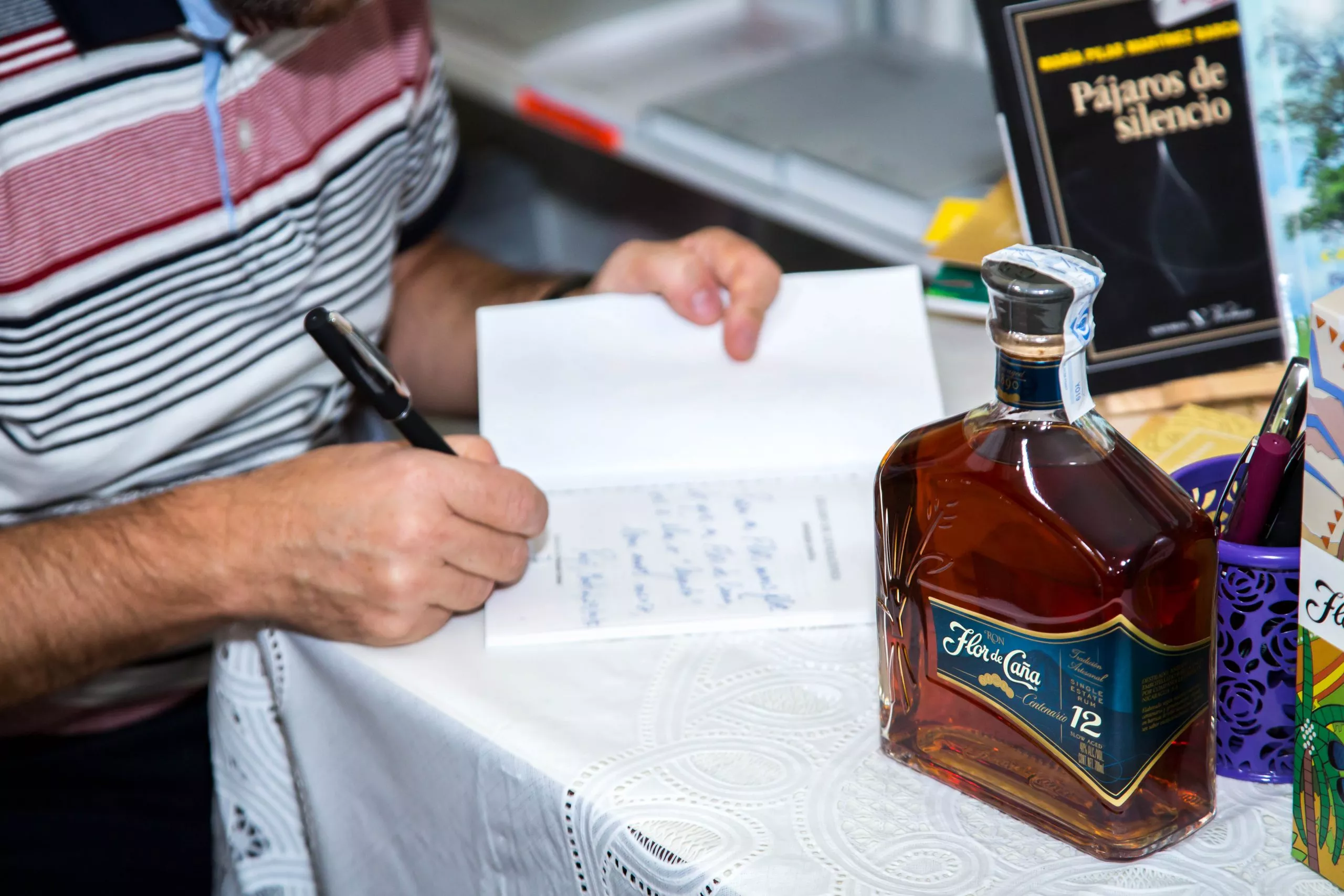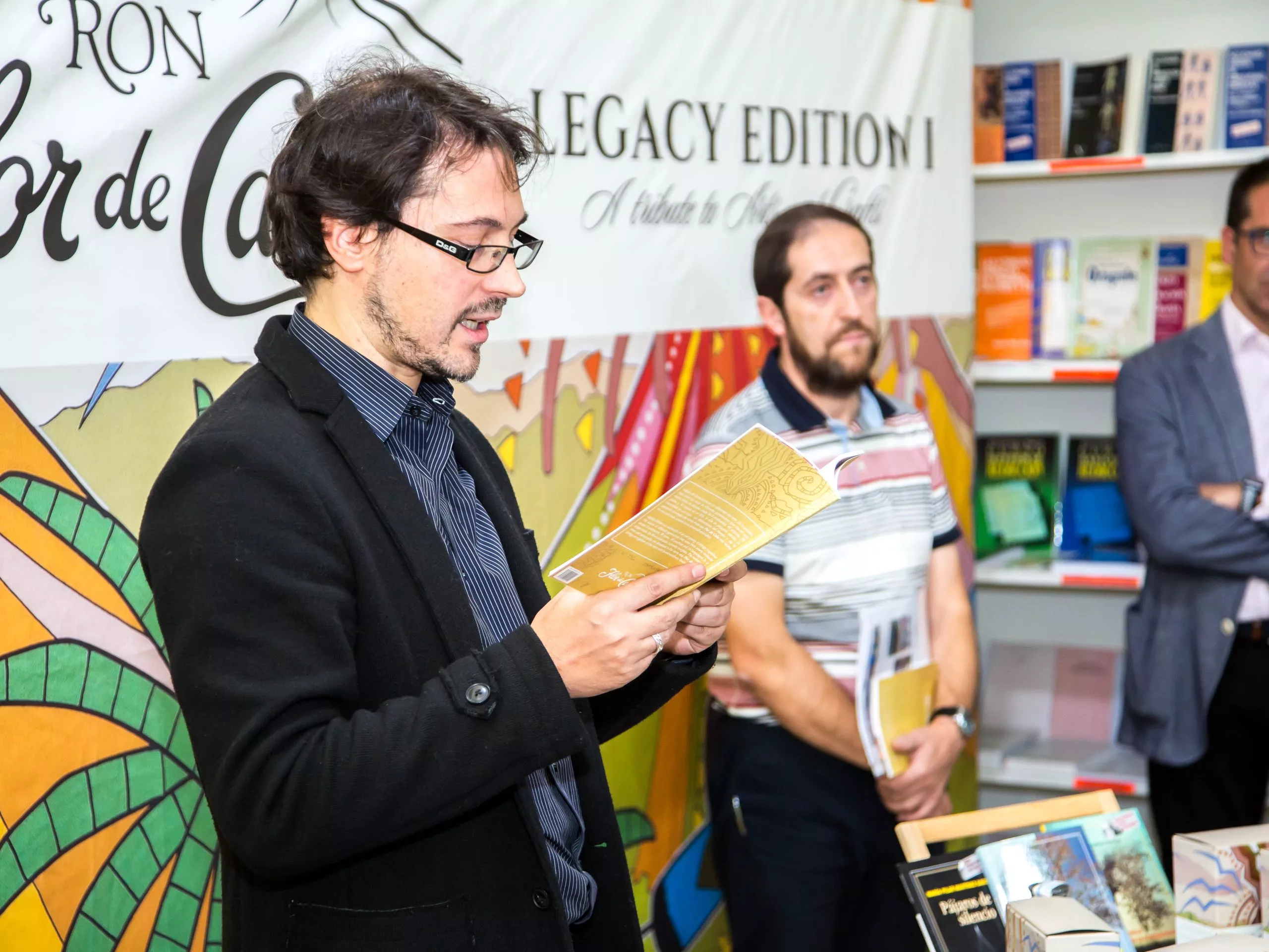 A continuación, Ron Flor de Caña, presentó su edición especial de la antología «Legado de Generaciones». El poeta portugués João Rasteiro, ganador del Premio Literario Manuel António Pina (2010) y cuyos poemas han sido traducidos a múltiples idiomas , leyó primero su poema “El baile de las madres», incluido en la antología, en portugués e invitó a David Grande, coordinador del Festival, a leer el poema en castellano. A continuación el poeta estuvo firmando ejemplares de la antología «Legado de Generaciones» a los asistentes.